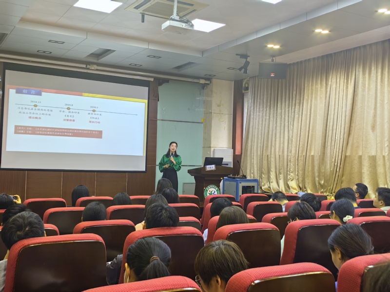 为深入学习贯彻习近平总书记在全国高校思想政治工作会议上的重要讲话精神,推进课程思政建设,坚持知识传授与价值引领相统一,使各类课程与思想政治理论课同向同行。11月30日下午,我院邀请了我校艺术学院教师、中国高等教育学会美育专业委员会会员郑琳喆老师在院楼105报告厅开展题为《“课程思政”在专业教育中的有机融入》“师道·领航”教学名师讲座,郑老师近年来先后获得第六届全国高校青年教师教学竞赛文科组二等奖,第六届广东省高校青年教师教学竞赛文科组一等奖(第一名),广东省首届本科高校课程思政教学大赛文科组一等奖,广东省高校美育优秀案例一等奖,华南农业大学本科课堂教学“十佳教师”,华南农业大学“师德标兵”,华南农业大学“三育人”先进个人。本次讲座由学院党委周艳华书记主持,学院全体教职工、博士后参与。