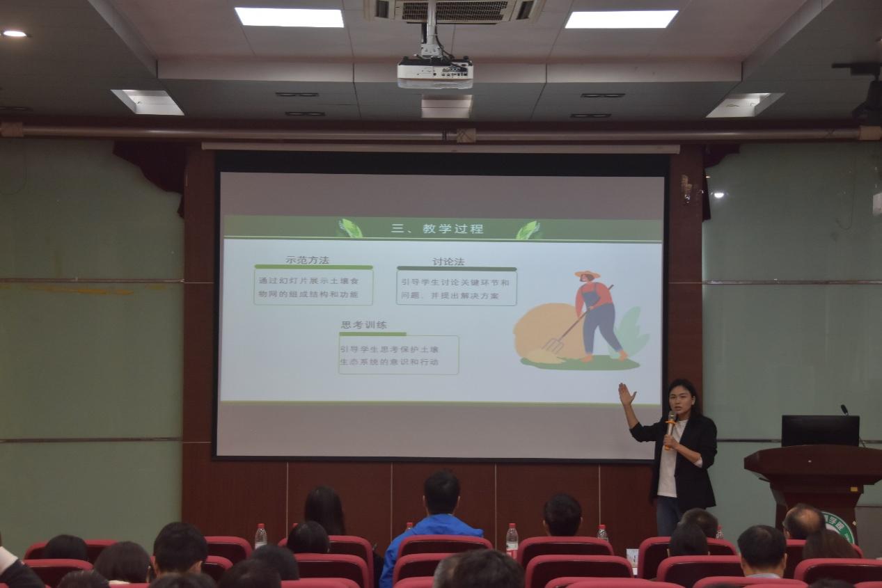 会议第二部分是举行学院第九届教学基本功大赛。本次大赛由生态学系教授舒迎花主持,农学院副教授刘自强、生命科学学院副研究员白玫、我院生态学系教授蔡昆争、环境科学与工程系教授吕辉雄、测绘与地理信息系副教授刘惠明担任本次大赛的评委。来自学院各系各专业的8位老师开始了精彩的教学展示。